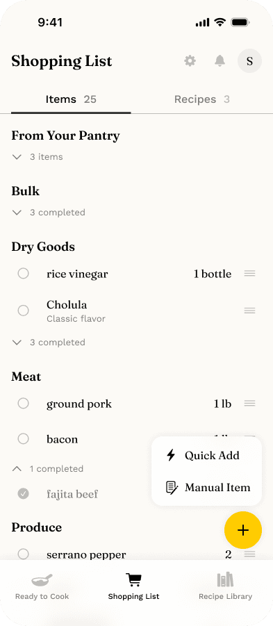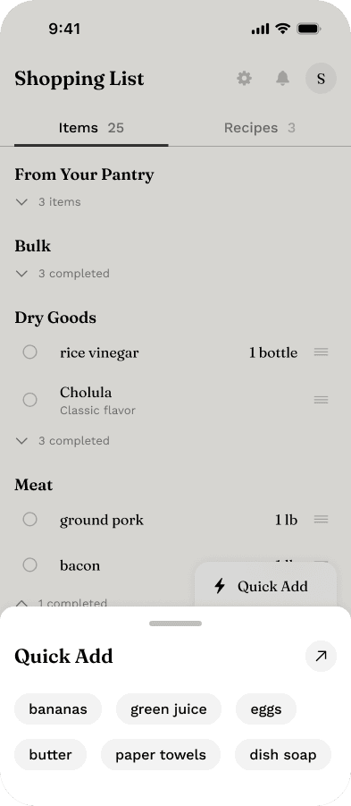 I've always enjoyed food and cooking. I love adding to my cookbook collection and I consider browsing NYT Cooking for a fun new dinner to be a leisure activity. I used to go to the grocery store every few days, but I really felt like I advanced to the next level of adulthood when I committed to the omnibus weekly grocery shop a few years ago. The only flaws with my "one big trip" strategy were that I routinely ended up spending at least half an hour looking up all of the recipes I wanted to make and cross-comparing the ingredient lists with what I had in the pantry to compose the actual list of what I was shopping for… and then I was also maintaining a separate list of all the recipes I had bought ingredients for & where they came from so I could keep track of what I had ready & could actually find the instructions when it was time to make a meal.